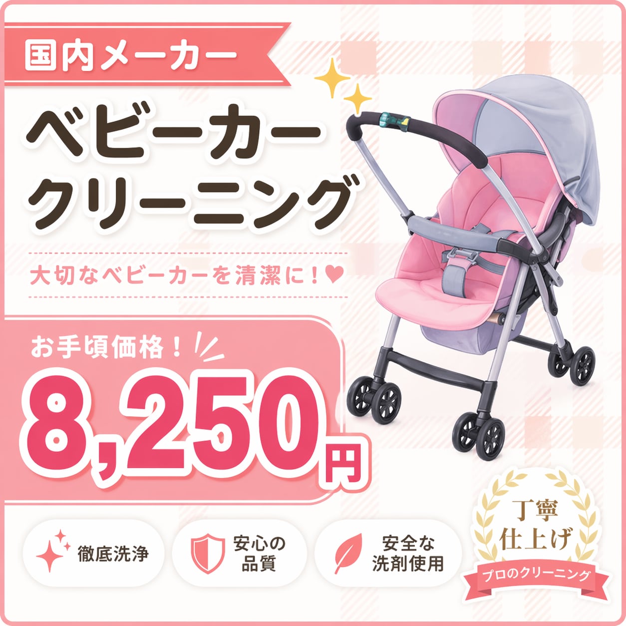 素材や構造に配慮した丁寧なクリーニングを行い、赤ちゃんが触れる部分をきれいに保ちます。皮脂やニオイをしっかりと除去し、安心できる環境を整えます。大切なお子様が日々使用するものだからこそ、定期的なクリーニングをおすすめします。