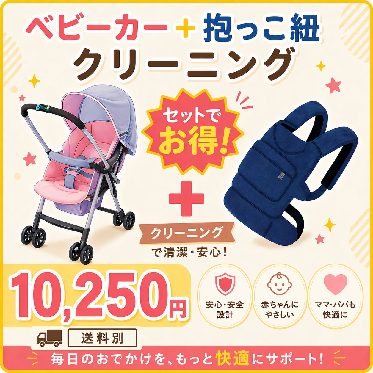 お得なセット価格でご利用いただけ、さらに抱っこ紐単体での送料がかからなくなるため、別々にご依頼いただくよりも、かなりお得になります。